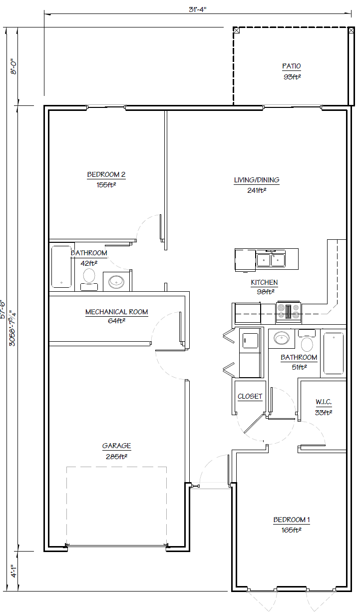 Spacious 2-bedroom, 2-bathroom floor plans (1,160 sq ft living space w/ finished 280 sq ft garage)
